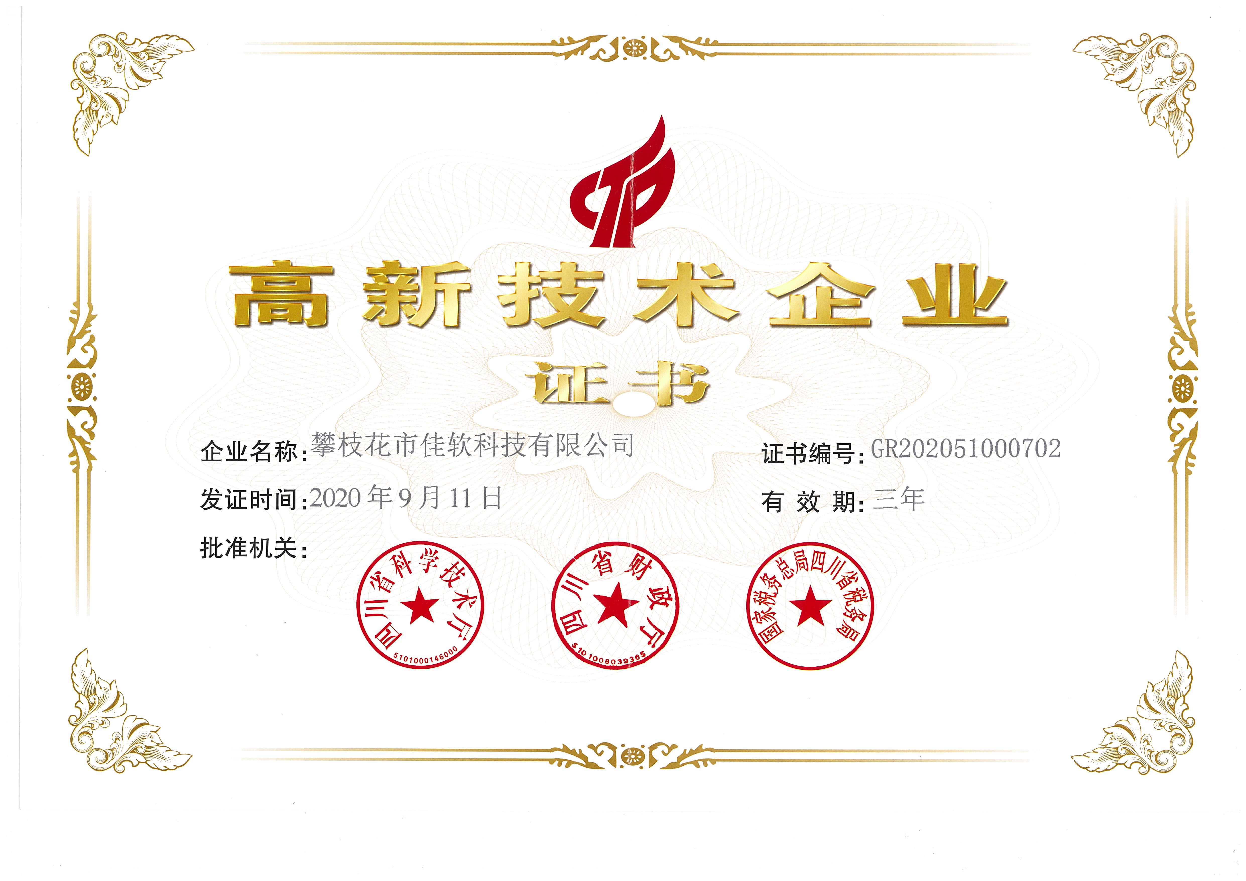 高新技術(shù)企業(yè)證書(shū)